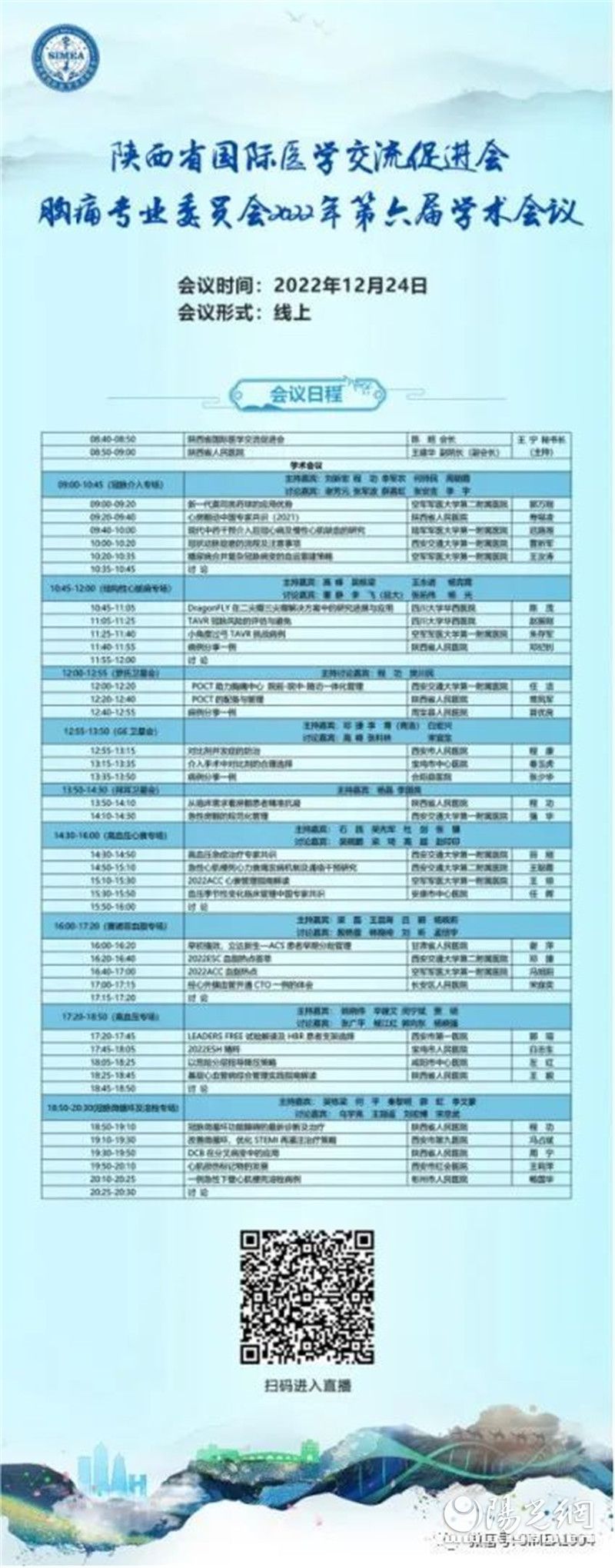 阳光讯(记者 郑亚雷)2022年12月24日,陕西省国际医学交流促进会胸痛专业委员会第六届年会暨学术会议通过线上会议的形式成功召开。开幕式由省国际医学交流促进会秘书长王宁主持,省医促会会长陈昭、陕西省人民医院副院长王建华莅临会议并致辞。
