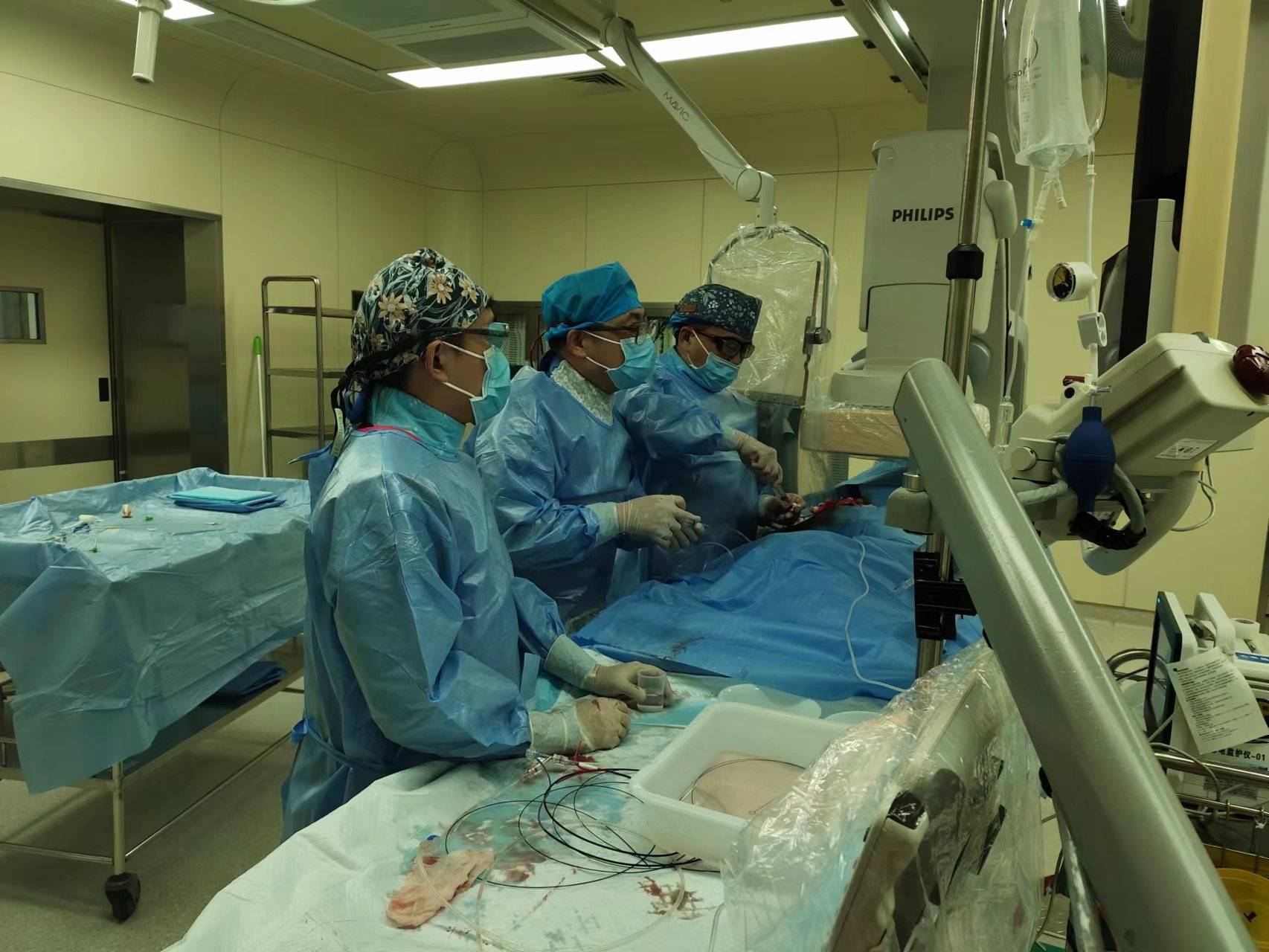 赵亮副主任医师介绍,动脉栓塞一般为急性发作,当心脏或动脉壁血栓、粥样斑块等栓子脱落,随血流向远端动脉流动,卡在口径比栓子小的动脉并堵塞管腔时,就会发生肢体、器官和组织的缺血和坏死。机械血栓抽吸术是一种用于治疗血栓形成的介入治疗方法,其过程为导管经过血管进入血栓的位置,然后使用机械装置将血栓抽吸或分解,通过这种方法恢复受阻的血液流动,帮助患者开通栓塞的动脉,尽快恢复靶器官血供,避免因缺血导致靶器官不可逆性损伤甚至危及生命的情况出现。