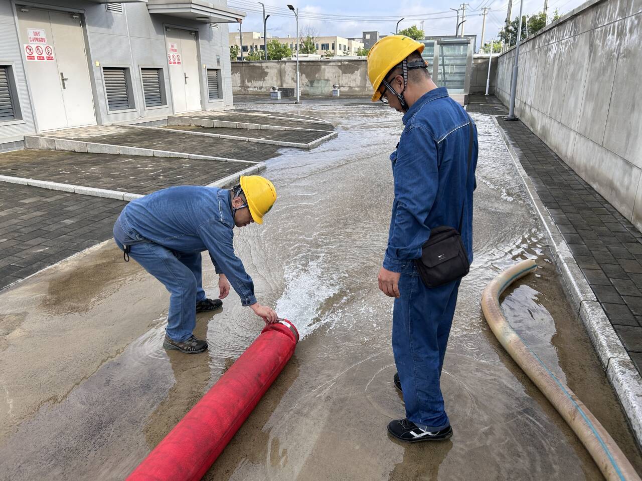 赵哲辉告诉记者,“大白龙”高机动排水工作放舱具有机动性强、吸水深、排水量大、连续工作时间长等特点,适用于电缆沟道、地下电力设施等内涝排水抢险救灾。两个水泵抽水功率共计44千瓦,可以在100米外的距离进行抽水,每小时可抽水1000立方米。说话间,站外、站内的工作人员已经将白色吸水带和红色排水带摆放到指定位置,并有专人对排水放舱发电机、水泵、控制箱等各部件进行仔细检查,现场操作人员汇报,“排水放舱发电机启动无异常,水泵与吸水带、排水带已可靠连接,现场设备接地良好,可以开展排水作业。”“启动发电机!启动控制电源!”随着控制电源箱开关按钮被按下,在轰隆声中,水泵启动运行,积水很快被抽排到污水管道。