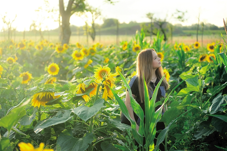 夕阳下,手捧荞麦咖啡,在占地400亩的荞麦花、向日葵花海中自拍,来自牙买加的网络博主柯林斯感到非常放松。她说:“这里的风景太漂亮了,连空气闻起来都很特别。我平时会找一些安静的地方记日记、思考,这里就让我感觉很宁静。”