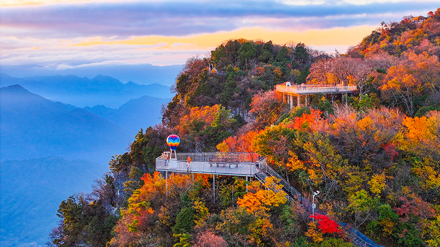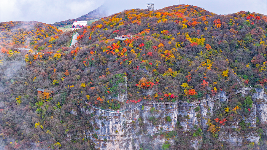 金秋时节,汉中龙头山景区进入最佳观赏期,色彩绚烂的秋景宛若一幅精心绘制的油画,各类色调相互交织,层次分明且浓郁丰富,给人带来不一样的视觉享受。(宋晓丽 王岩)