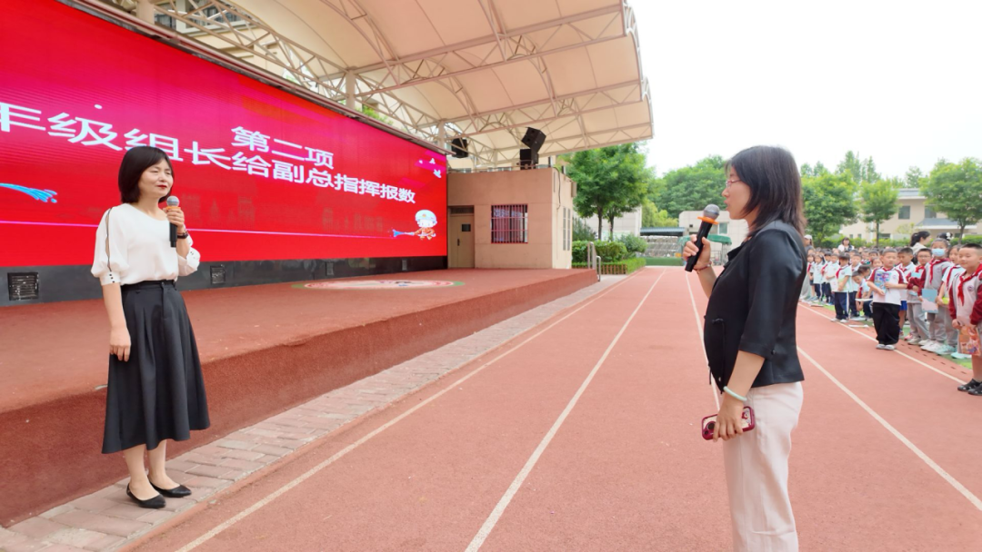 各年级组长给副总指挥柏宝玲副校长报数。