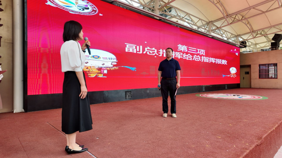 柏宝玲副校长给总指挥报数。