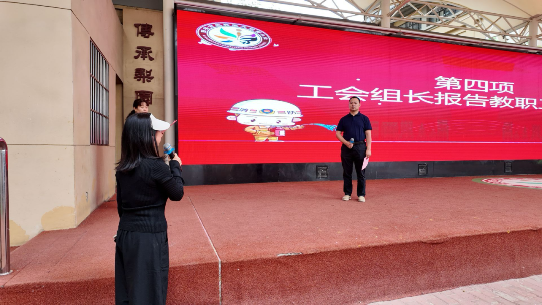 工会组长朱韦老师报告教职工人数。