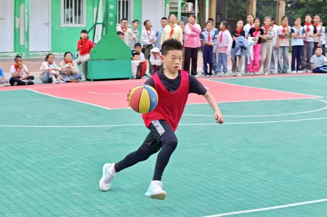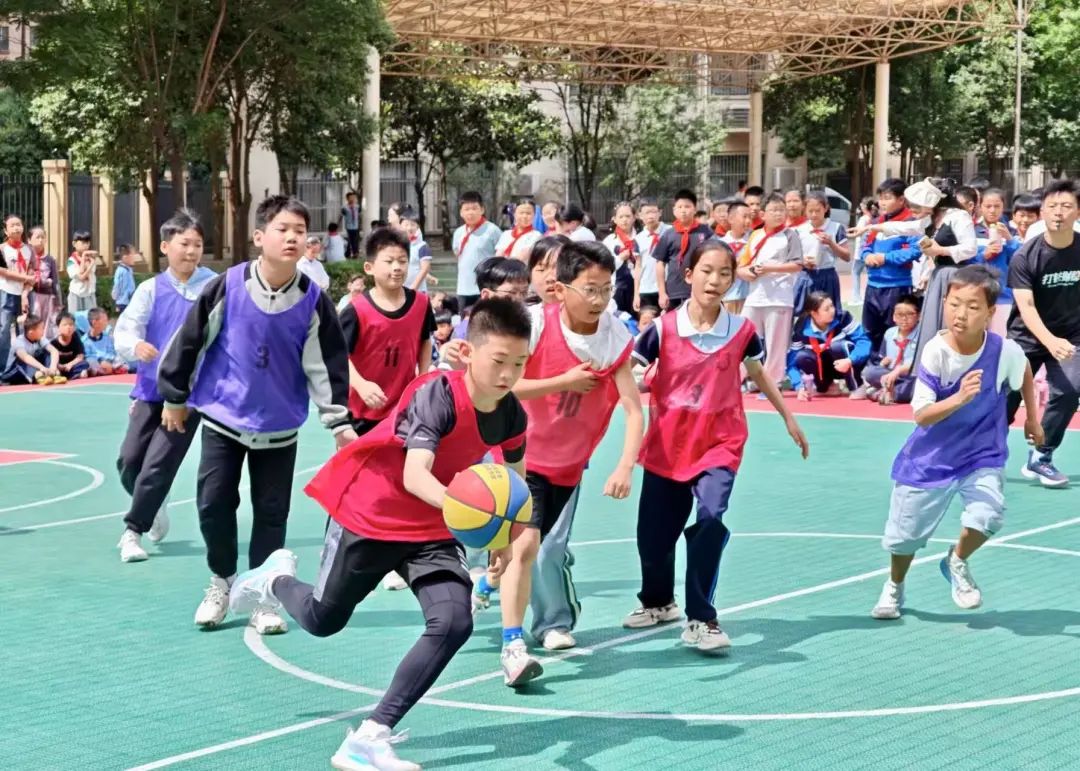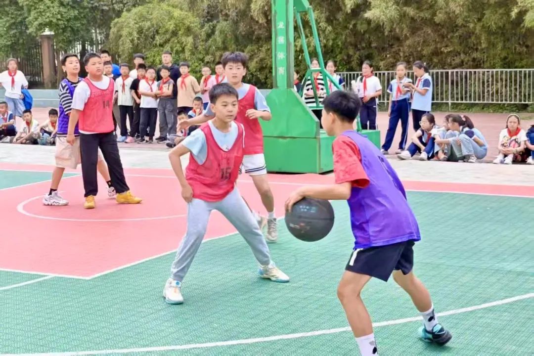 看!小小球员们眼神坚定,如猎豹般奔跑在球场上。快速运球、精准传球、帅气投篮,每一个动作都充满力量。他们在赛场上你追我赶,为了团队荣誉全力以赴。比分交替上升,紧张刺激的氛围感染着每一位观众。场边的同学们化身“最强啦啦队”,加油声、助威声此起彼伏,为球员们注入无限动力!