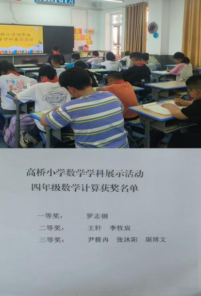 四年级举行了数学知识竞赛活动,所有学生都能积极参与,班主任老师大力支持,数学老师从监考到阅卷都非常认真严谨。参赛学生取得了优异的成绩。通过本次竞赛也暴露出了一些问题,部分学生的计算能力、卷面书写、逻辑推理、独立应试等方面较弱。通过此次活动引起学生的足够重视。