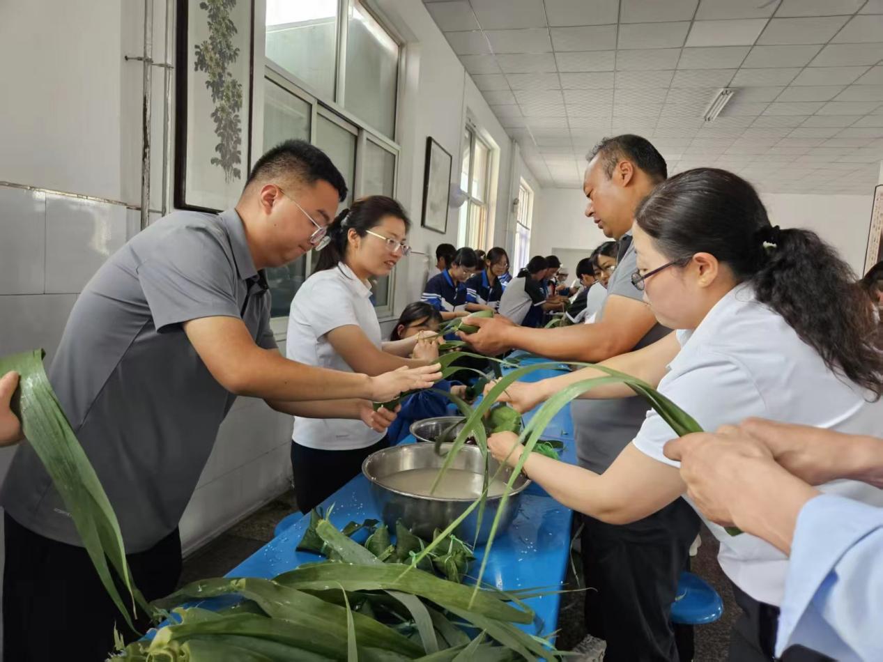 5月27日上午,德育处先后组织开展“五彩迎端午”现场编彩绳活动、班级香包展和“粽香满堂”包粽子活动。同学们相互切磋、携手并进,将理论知识与实践操作完美融合。洗粽叶、折粽叶、装糯米、放大枣、合彩绳,大家动作娴熟,配合默契。师生200余人参与其中,共享传统节日的快乐。