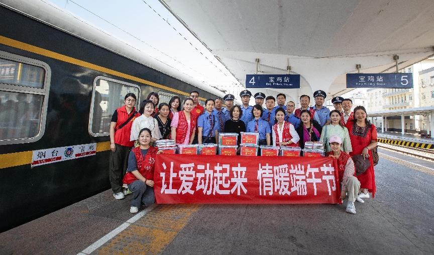 宝鸡上善公益联合会妇联活动负责人王超红表示:“铁路工作者是旅途安全的守护者,希望通过这份心意表达社会的敬意与感谢。”随后,慰问团队登上K1132次列车,将活动延伸至飞驰的车厢中,与乘客共度端午佳节。
