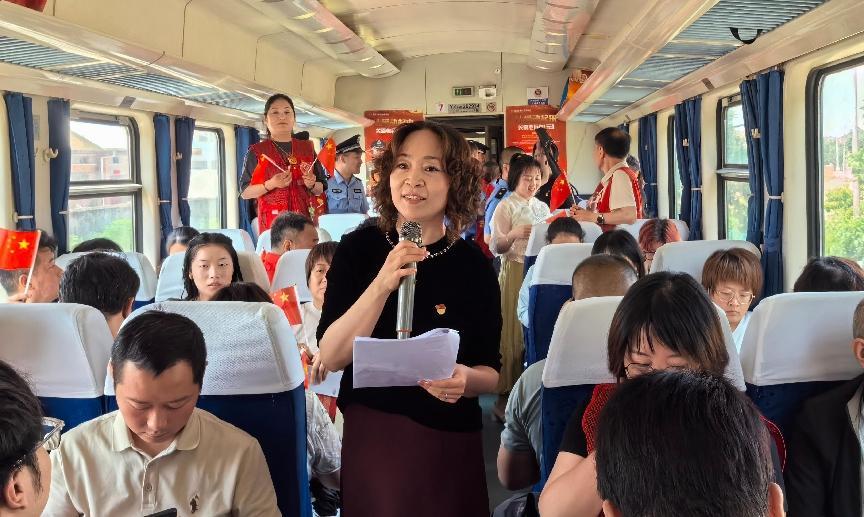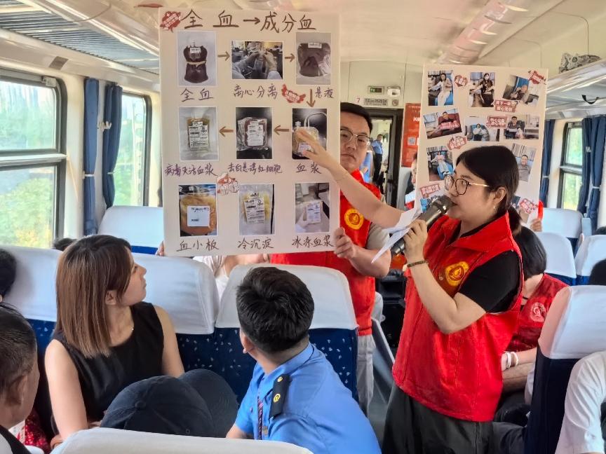阳光讯(记者 张伟)2025年5月28日,端午佳节前夕,宝鸡市图书馆、宝鸡市中心血站与宝鸡上善公益联合会妇联联合发起的【我们的节日•端午】——“让爱动起来 情暖端午节”公益慰问活动在西安铁路公安处乘警支队和K1132次列车上温情开展。活动以捐赠物资、文化互动、公益宣讲等形式,为坚守岗位的112名乘警、乘务人员及广大旅客送上节日关怀,传递社会温暖。