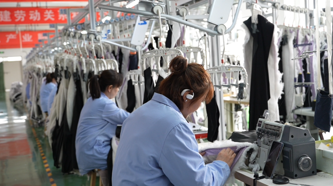 制衣车间内,工人们正在不同工位完成指定的操作流程