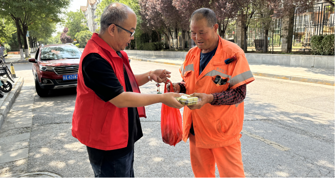 活动结束,社区工作人员走访慰问了环卫工人和困难群众,送去粽子、绿豆糕等物品,传递社区关怀。