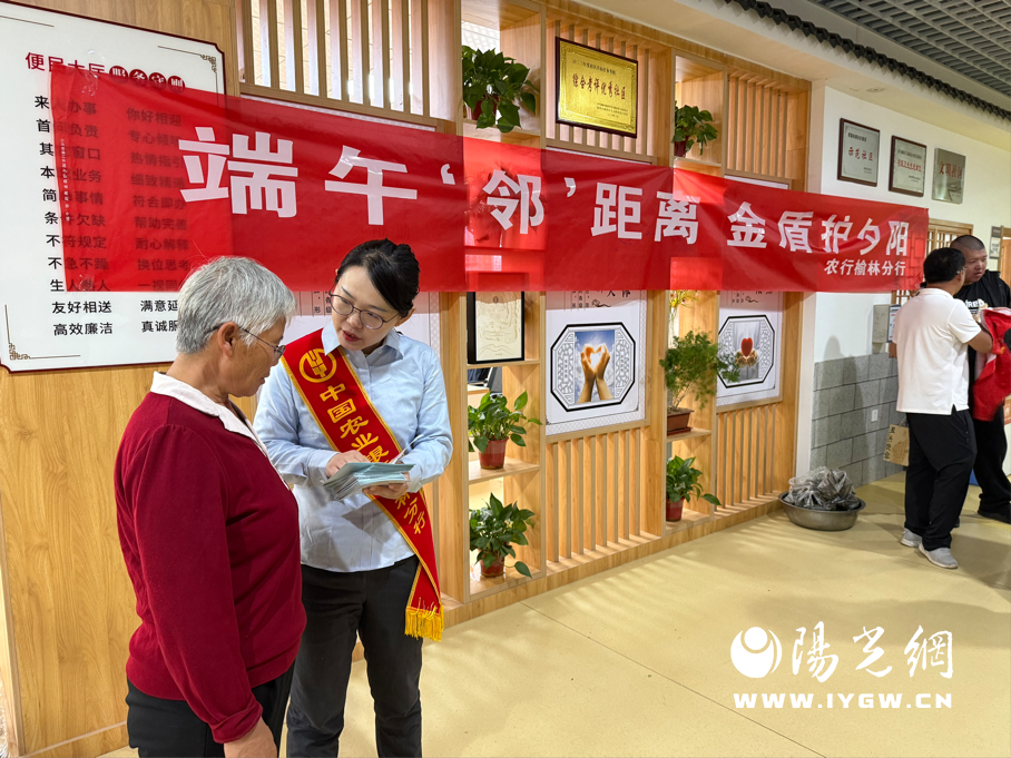 阳光讯(魏湘茹 记者 李源)粽叶飘香传温情,邻里和谐共此时。为弘扬中华优秀传统文化,践行服务民生的社会责任,5月30日上午,农行榆林分行与榆阳区崇文路社区联合举办了“端午‘邻’距离 金盾护夕阳”主题活动。