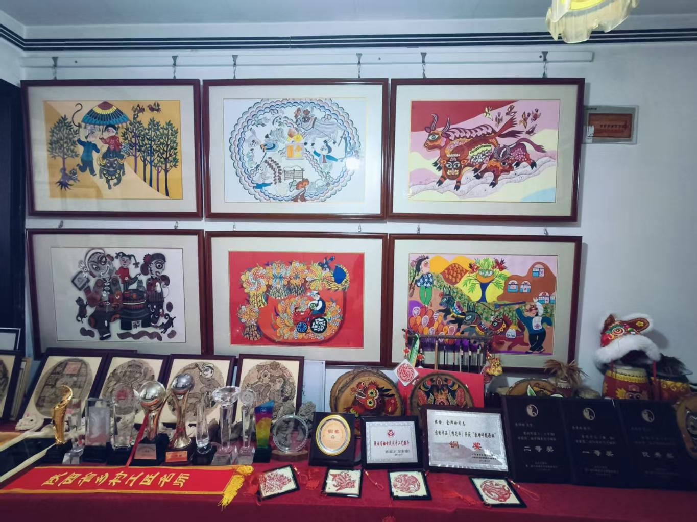 “我们会剪纸,基本上就触类旁通,也会画民间画,还有拼贴画和刺绣。”安塞剪纸大师余泽玲和陈海莉向新华指数研究院的调研人员展示剪纸作品时,也拿出了自己曾获大奖的绘画作品。她们在创作的时候,其构图观念具有明显的剪纸痕迹,有的乡村妇女甚至先用剪刀剪个大致轮廓,再涂上颜色,就能创作出一幅民间画来。
