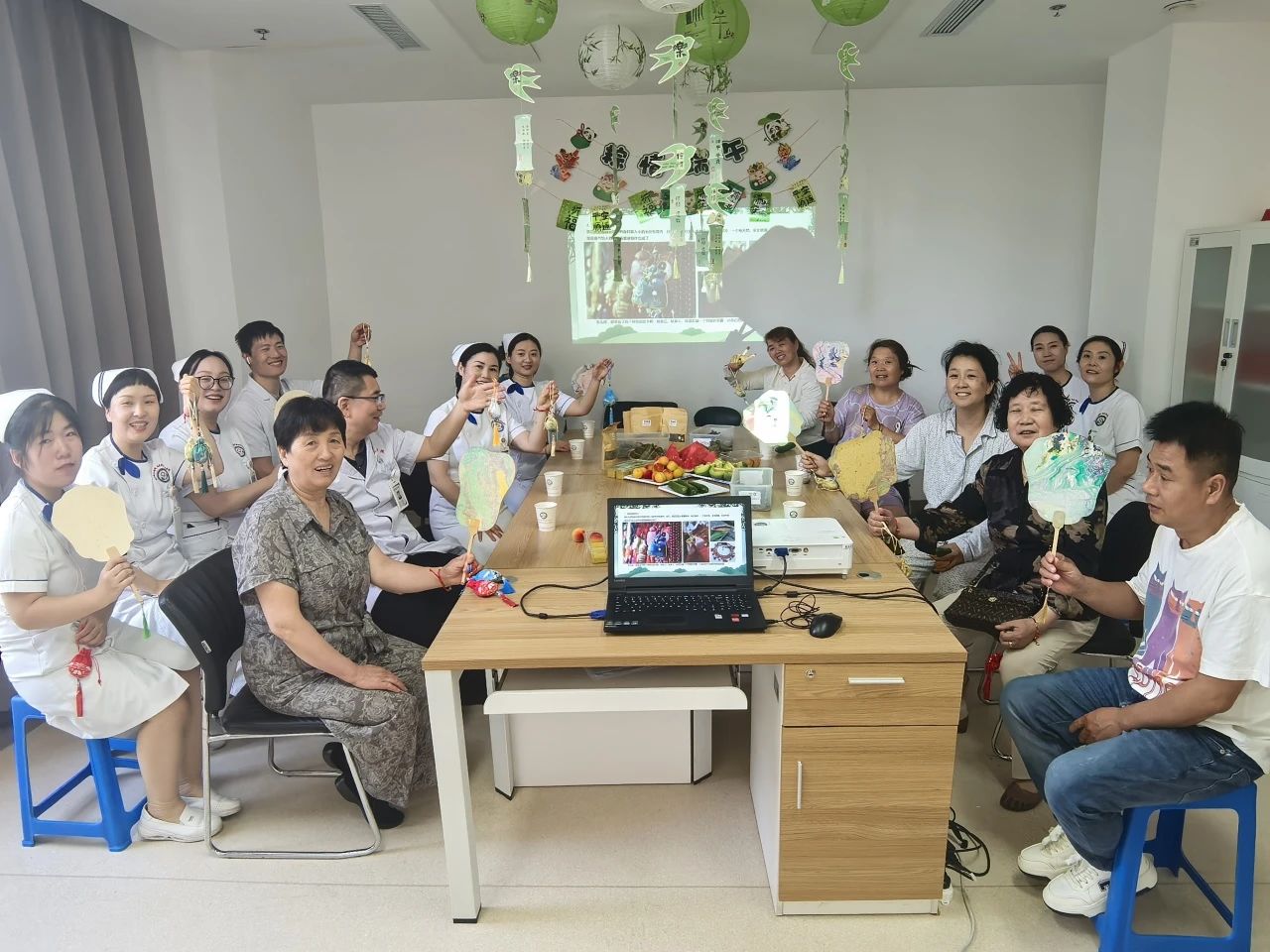 5月29日下午,普外肝胆一科的医护人员与住院患者及家属齐聚一堂,通过品茶饮、制香囊、编手绳、绘漆扇等互动环节,共同感受传统文化的魅力,传递“医患一家亲”的温暖情谊。