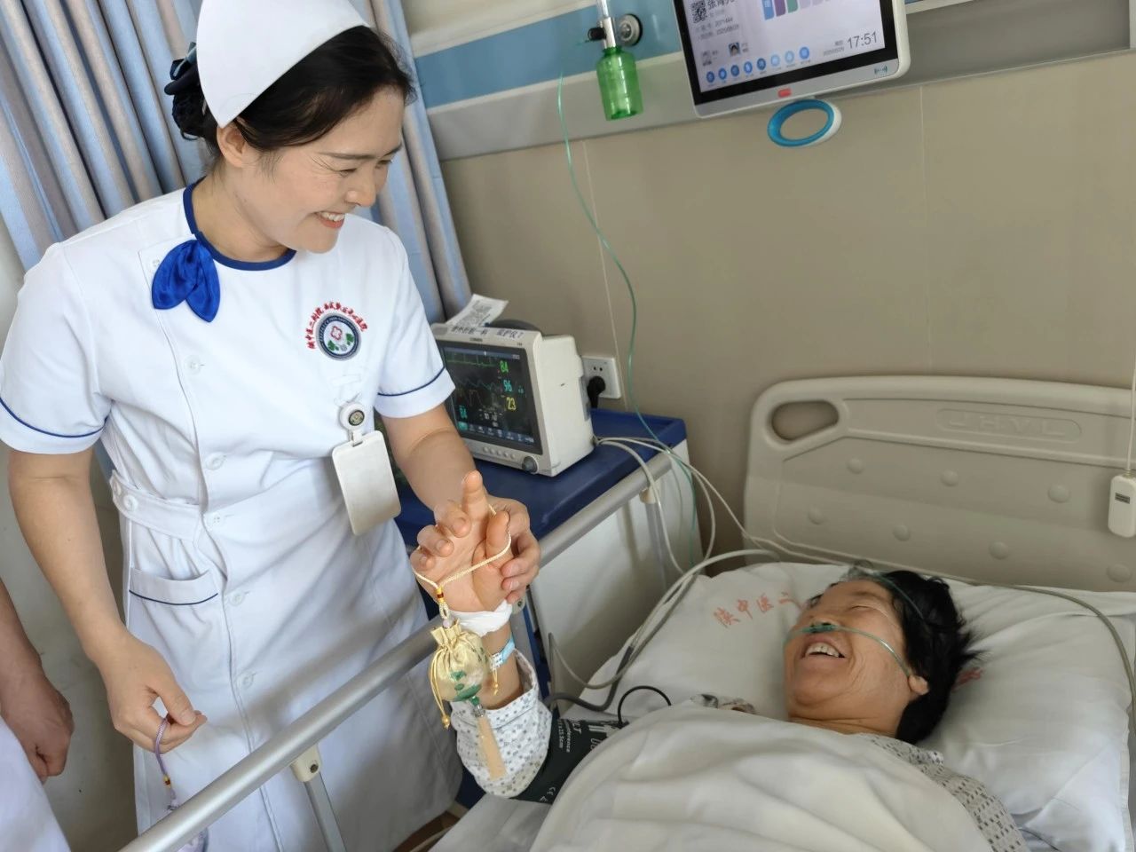 当会议室的欢笑声渐歇,一缕药香悄然飘向病房。为了让术后卧床、重症监护等无法到场的患者也能感受节日温度,科室副主任查育峰、护士长王妮娜带领医护团队手持满载祝福的香囊,开启了一场“端午祝福床边行”。今早刚做完手术的张阿姨亲切的握着责任护士杨红的手说到:“没想到在医院也能过上端午节,你们这么用心,我的伤口都不怎么疼了。”