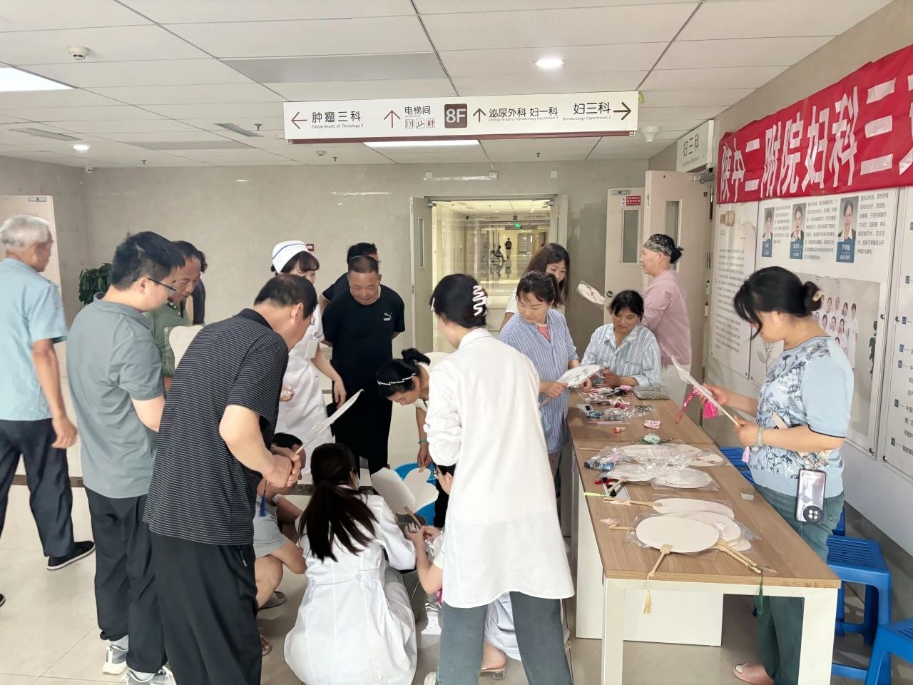为弘扬传统文化,营造温馨节日氛围,拉近医患距离,妇三科特别策划了“巧手制漆扇,香囊寄安康”端午主题活动。医护人员与住院患者及家属携手制作手工漆扇、缝制艾草香囊,在欢声笑语中传递节日祝福,共筑和谐医患情。