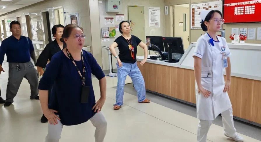 活动尾声,伴随着悠扬的古筝乐曲,医护人员带领患者集体练习中医养生操八段锦。从"双手托天理三焦"到"背后七颠百病消",医患携手舒展筋骨的动作成为病房里一道独特的风景线。化疗后正在康复的杨女士感慨:“跟着医生练完浑身舒畅,这种‘接地气’的养生方式我们学得会、用得上!”