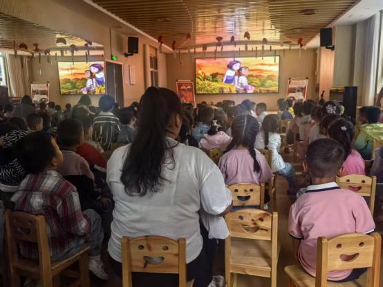 幼儿园的小朋友们整齐就座,聚精会神地观看了经典红色电影《红星小勇士》。影片以童真视角讲述小英雄潘冬子的革命故事,孩子们被跌宕起伏的剧情深深吸引,不时为小主人公的勇敢机智鼓掌欢呼。“潘冬子好勇敢!我也要像他一样!”一名大班幼儿在观影后激动地说道。