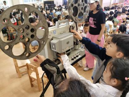 为让孩子们了解电影的发展历程,电影公司工作人员特别展示了16mm老式胶片电影放映机,并现场演示胶片电影的播放原理。“原来电影是从这个圆盘里放出来的!”“胶片上的小人会动!”孩子们围在放映机旁好奇观察,在互动问答中感受传统电影技术的魅力。