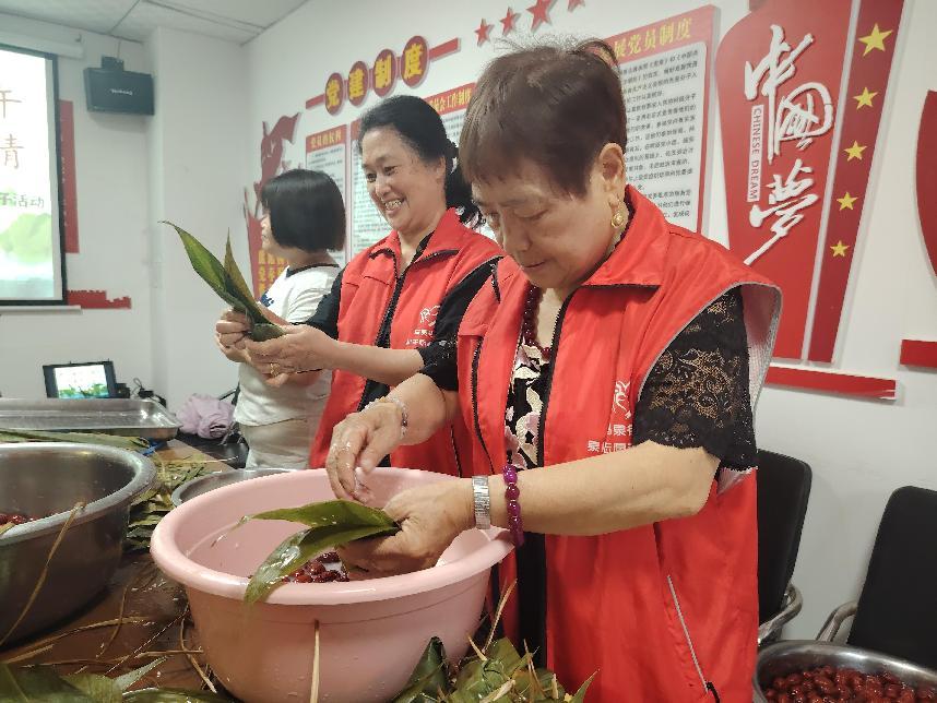 活动现场,工作人员提前准备了糯米、粽叶、红枣等材料,居民们围坐在一起,一边交流包粽子的技巧,一边分享端午习俗故事。经验丰富的阿姨们手把手教年轻人如何卷叶、填米、捆绳,现场欢声笑语不断。经过大家的共同努力,一个个饱满诱人的粽子逐渐堆满了托盘。