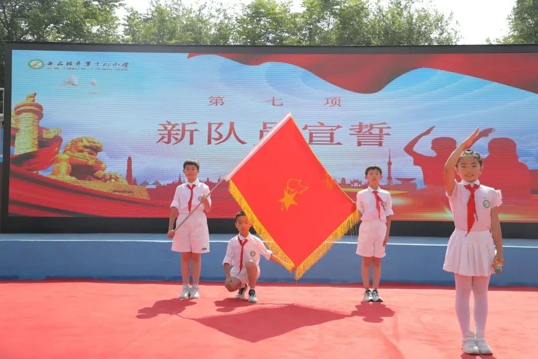 “准备着,为共产主义事业贡献力量!”5月30日,经开十九小293名一年级学生庄严宣誓,正式加入中国少年先锋队。在出旗、唱队歌、授红领巾等环节中,孩子们目光坚定,胸前飘扬的红领巾与队旗交相辉映。