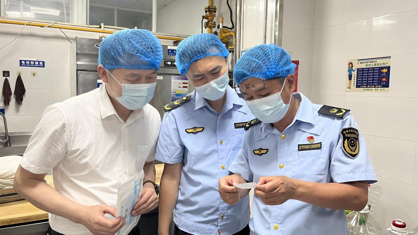 本次检查,执法人员对各考点食堂食品储存管理、环境卫生、餐饮具清洗消毒、食品留样、从业人员健康状况、经营资质、进货查验和索证索票等进行详细检查。检验检测人员对考点食堂食用油、面粉、辣椒等食材进行抽样和快速检测,全面排查食品安全风险隐患。督促各考点学校及周边各餐饮单位切实履行食品安全第一责任人职责,重点把好进货食材审查、食品留样等重要关口,切实筑牢食品安全防线,确保中高考期间食品安全。同时,对各考点周边食品经营门店面包、绿茶等食品饮料订货渠道、保质期等进行详细检查,要求各经营门店严格履行食品安全主体责任,严禁销售过期、“三无”、腐败变质等食品。