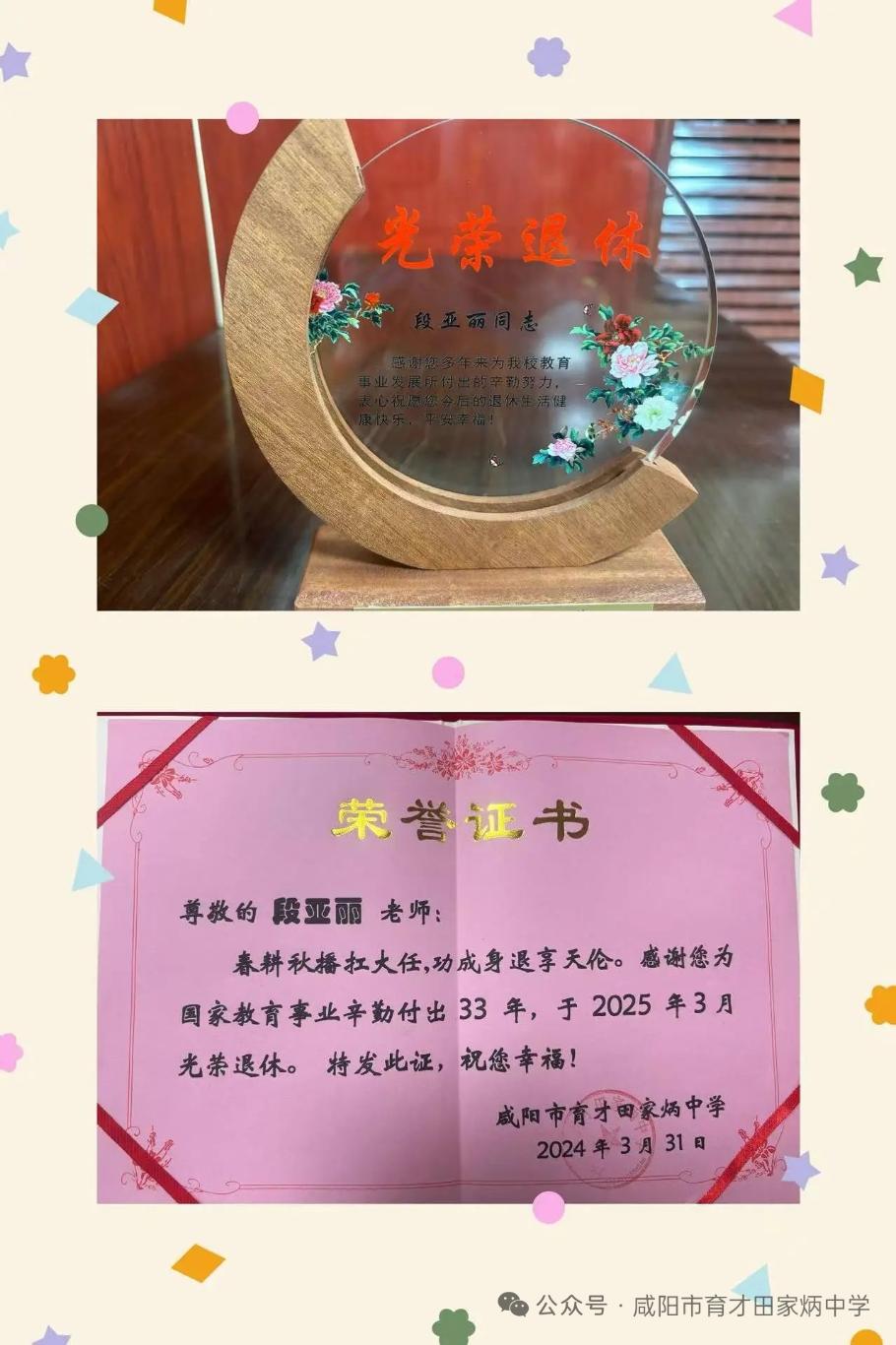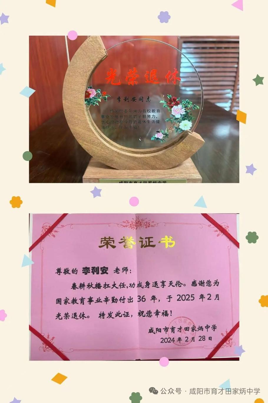 岁月染芳华,桃李育芬芳。2025年6月5日上午11时,咸阳市育才田家炳中学二楼会议室暖意融融,一场充满温情与敬意的教师退休欢送会在这里举行。学校领导班子成员、学科代表,共同为李利安、董爱宁、段亚丽、魏红梅四位光荣退休的教师送上诚挚祝福,致敬他们为教育事业倾注的半生心血。
