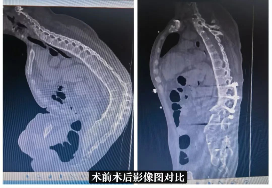 这场手术成功将患者脊柱后凸角度从106°矫正至29°,身高增加了40cm,恢复接近正常的矢状面平衡。患者及家属对此非常满意。患者更是哽咽地说:“40年了,我第一次能平躺着睡觉,真是太激动了。感谢王主任团队为我手术,让我挺直了腰杆,终于可以像正常人一样与他人交流了。我现在不自卑了,感觉生活又有了希望,后半辈子一定好好生活。”