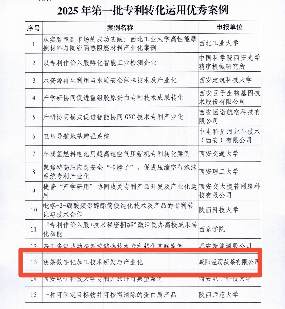 阳光讯(记者 刘金 通讯员 乔义平 文/图)5月28日,省知识产权局公布2025年第一批专利产业化优秀案例,咸阳市咸阳泾渭茯茶有限公司《茯茶数字化加工技术研发与产业化》成功入选,成为全省地级市唯一入选案例。