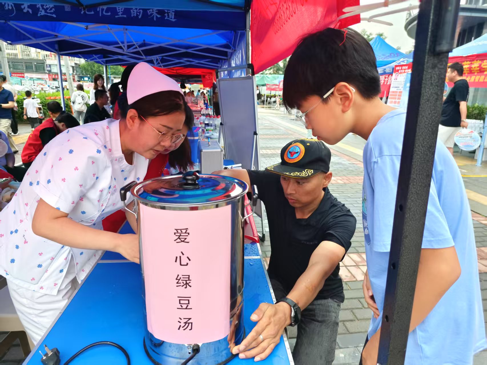 在考点外的志愿服务站点,志愿者们热情地将一碗碗精心熬制的爱心绿豆汤递到考生和家长手中。清甜的绿豆汤,不仅为炎炎夏日带来一丝清凉,缓解着他们紧张的情绪,更承载着街道、社区对考生们的美好祝愿。
