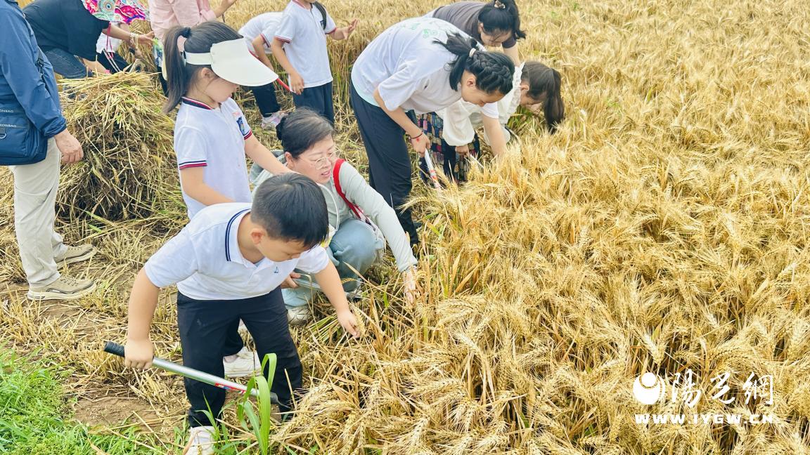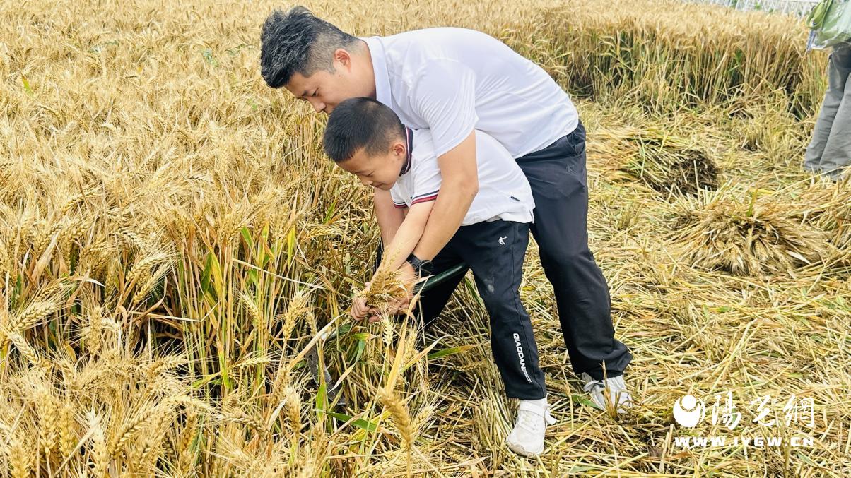 体验区内热火朝天,家长申超正手把手教儿子如何正确握镰、割麦。“带孩子来,就是想让他零距离感受农耕文化,特别是体验割麦子这项农活的艰辛。”申超抹了把汗解释道,“让他知道我们这座‘农科城’的使命,明白小麦从哪里来,粮食多么来之不易,才能真正懂得‘珍惜’二字的分量。”