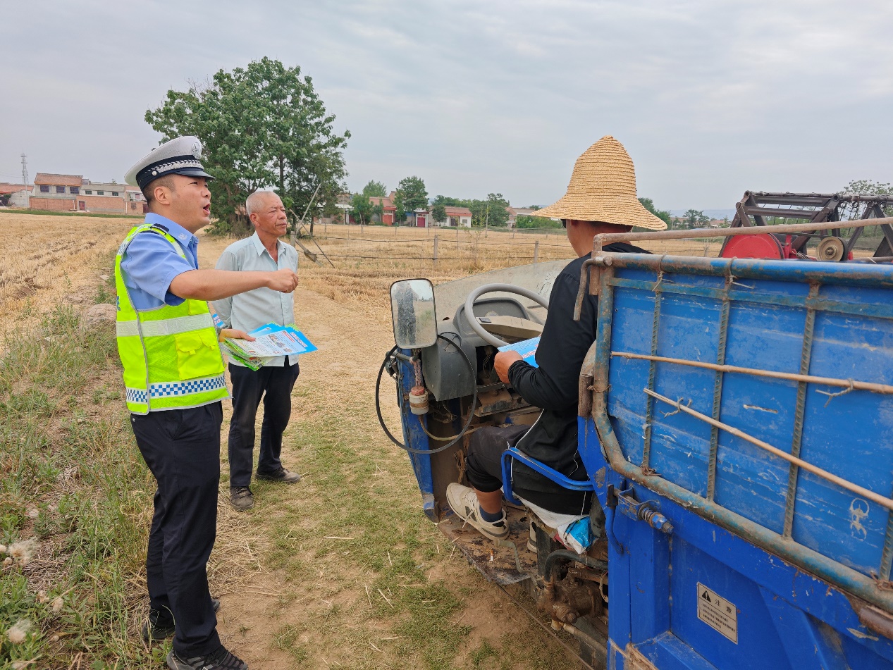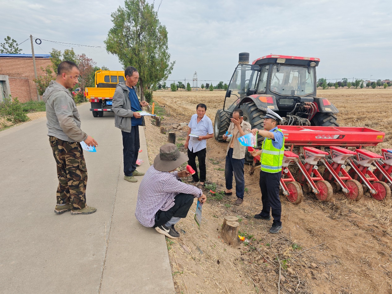 活动中,民警化身“麦田宣讲员”,穿梭在收割机轰鸣的田间,向忙碌的农户、农机驾驶员发放交通安全宣传手册,结合农用车违法载人、超载、疲劳驾驶等典型案例,用通俗易懂的语言讲解违法行为的危害性。同时,针对麦收期间车辆增多、秸秆占道等隐患,民警现场普及《道路交通安全法》相关规定,提醒群众及时清理路面障碍物,确保道路畅通。