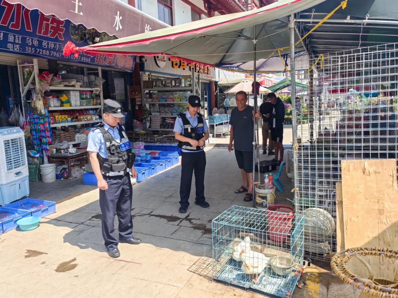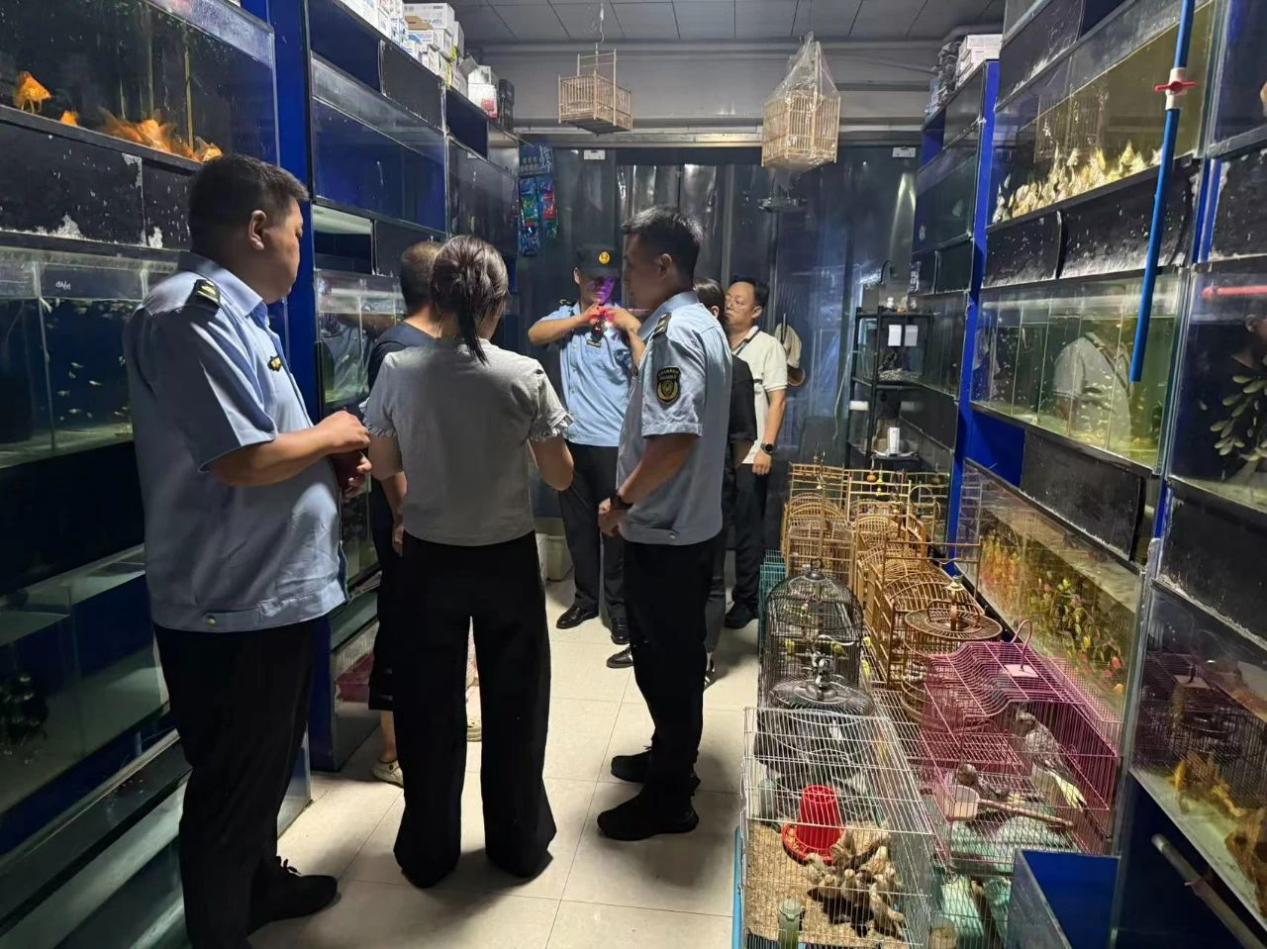 阳光讯(记者 熊玺 文/图)为切实加强野生动植物保护,同时维护辖区市场合法合规的营商环境,近日,公安新城分局联合长乐中路派出所,全面开展花鸟鱼虫市场安全检查,以切实有力的行动和行之有效的举措,为自然生态建起公安“守护墙”。