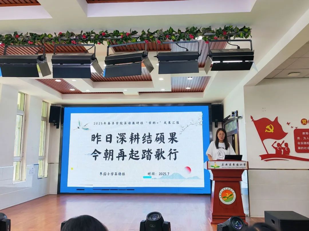 为了推动“学科+”课程成果进一步凝练与优化,7月3日下午,枣园小学开展年度教研论坛活动,本次论坛由教研主任王槐荣主持,行政领导及全体教师参会。各教研组长围绕“学科+”课程,分享集体、个人成果、展示组员风采,共探课程优化方向与实施路径。