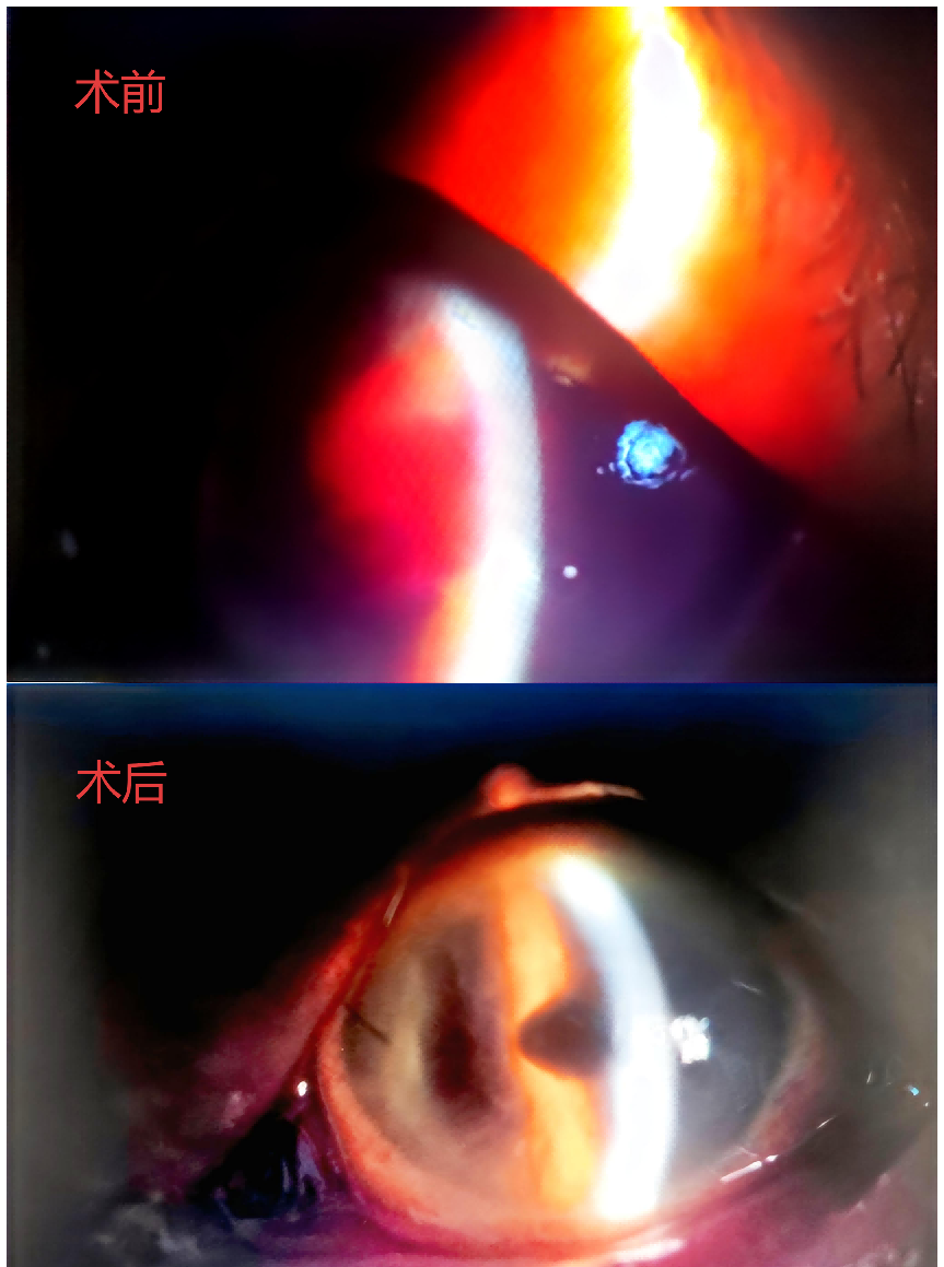 2周前,外地务农的杨先生不慎被树枝划伤左眼,瞬间视力丧失、剧痛难忍。当地医院多次手术仍未能控制病情,甚至被诊断为“眼球不保”。经多方打听,他带着最后希望奔赴西安市长安区医院求诊。张红兵教授接诊后立即组织多学科会诊,发现患者角膜裂伤合并眼内出血、前房消失,病情复杂且进展迅速。