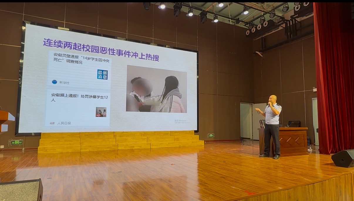 在浐灞二中开展七年级新生入学教育期间,担任法治副校长的辛家庙派出所民警张伟用真实案例给孩子们上安全教育课。“打架、起外号、冷暴力都是校园欺凌!”没有枯燥的法条,而是通过同龄人身边事,让法治知识变得通俗易懂。