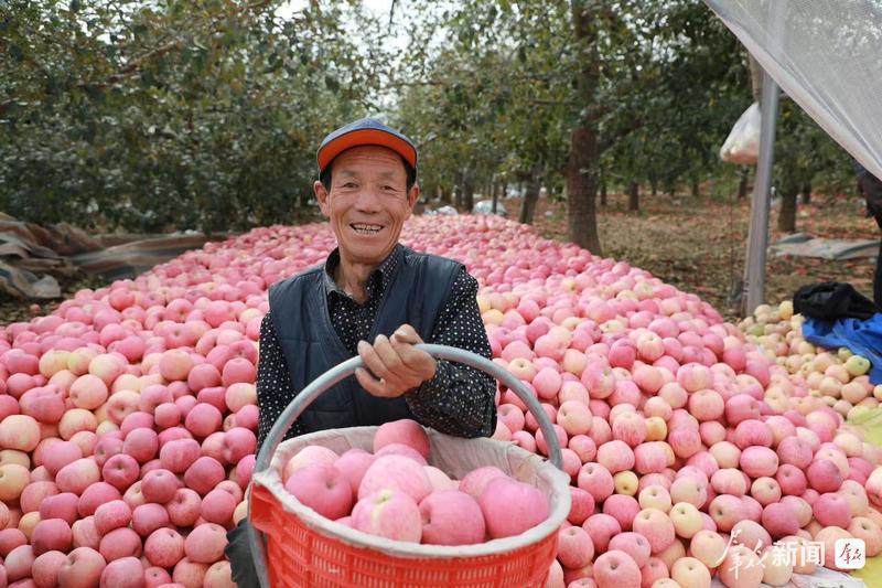 延安市果业中心主任路树国说:“2024年延安苹果综合产值达551亿元。100多万人从事苹果产业相关工作,农民经营性收入超六成来自苹果。”