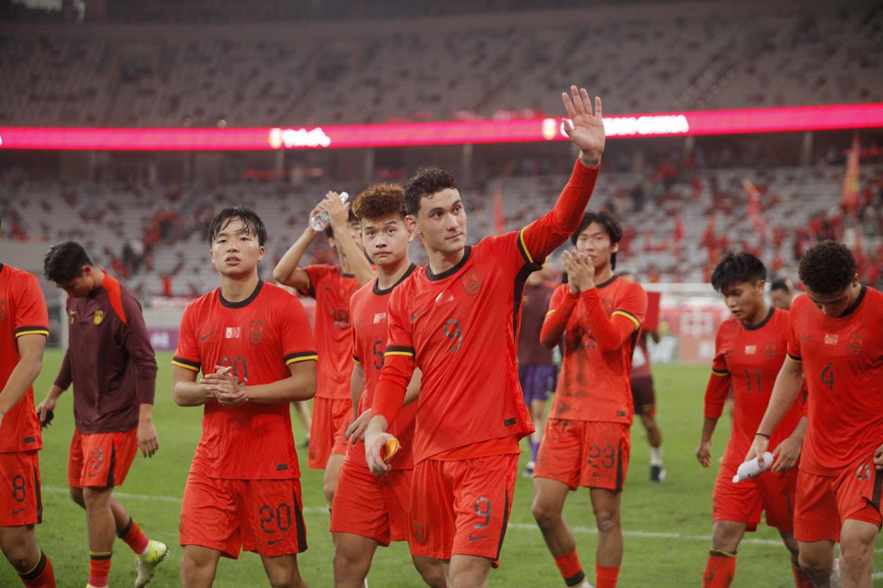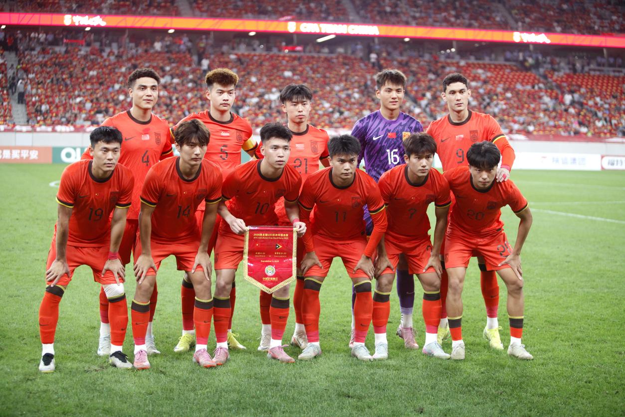 此役,中国队主教练安东尼奥尽遣主力出战。比赛第41分钟,汪士钦右路任意球传入禁区,拜合拉木停球后顺势推射将球打进,攻入中国队在本届U23亚洲杯预选赛的首粒进球。第45分钟,蒯纪闻中场左肋带球至前场倒地铲传,王钰栋前插巧妙扣过对方后卫,在罚球区线左侧兜射远角得手。上半场结束,中国队两球领先。