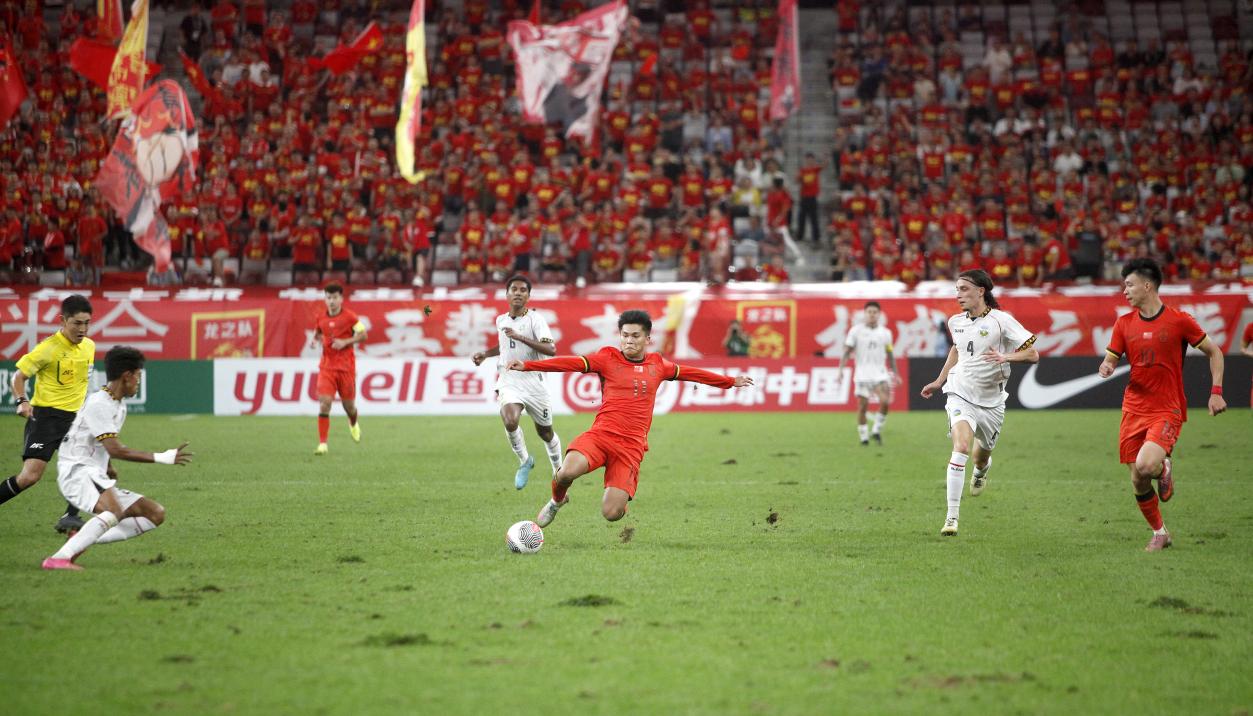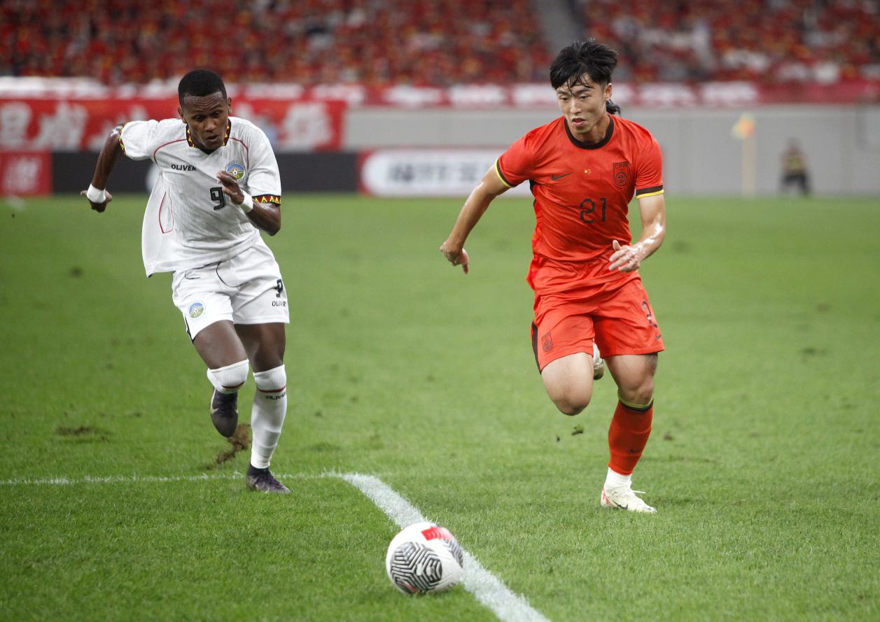 下半场开局阶段,中国队错失了几次改写比分的机会。第52分钟,弗雷塔斯在球门区左侧小角度斜射破门,为东帝汶队扳回一分。第58分钟,向余望球门区右侧近距离推射击中横梁。最终,中国队2比1战胜东帝汶队。