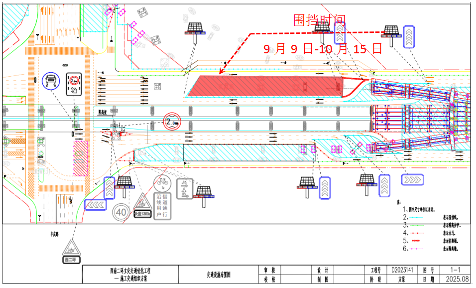 阳光讯(记者 郭璟霖)2025年9月9日0时至12月31日24时,西南二环立交交通优化,工程主线(第二阶段),沣惠南路两处施工围挡区域有调整,交通组织调整情况如下:
