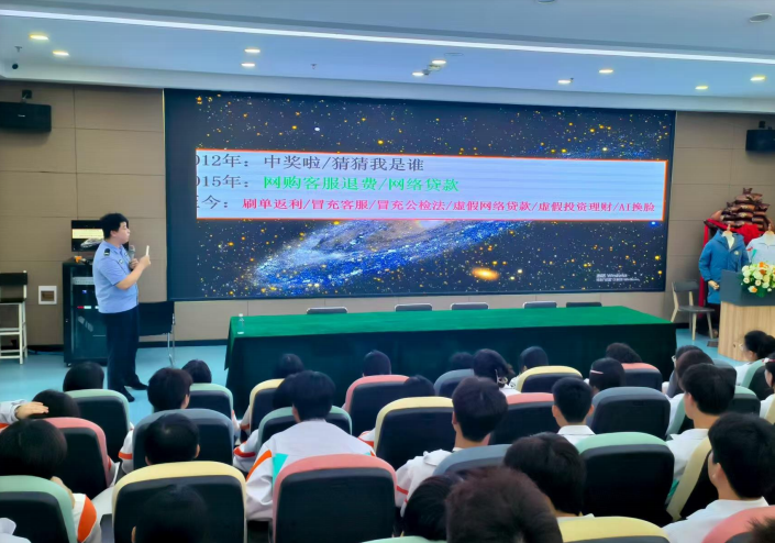 活动中,民警结合近年来青少年电信诈骗、校园欺凌、交通安全等典型案例,用案例拆解和互动问答的通俗语言,向学生讲解“如何辨别诈骗链接”“遭遇欺凌时的正确应对方式”“过马路的安全细节”等知识;通过情景模拟“陌生人问路借物”“收到陌生快递包裹”等场景,引导学生主动识别风险、掌握自我保护技巧。