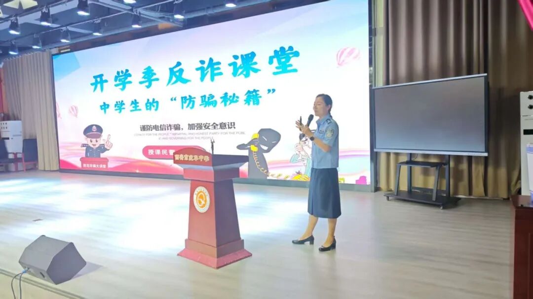 席王派出所社区民警张睿涵作为鸿途职业高中法治副校长,在新学期开学典礼上面向全体师生开展“校园安全与防欺凌”主题法治讲座。结合职高学生特点,民警重点讲解了消防安全、交通安全、食品安全和网络安全知识,通过真实案例提醒同学们警惕网络诈骗、保护个人信息,并明确校园欺凌的表现形式与法律后果,引导学生树立“拒绝欺凌、尊重他人”的意识,鼓励大家在遇到问题时及时向老师和民警求助。