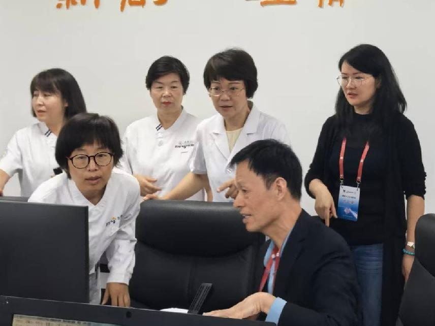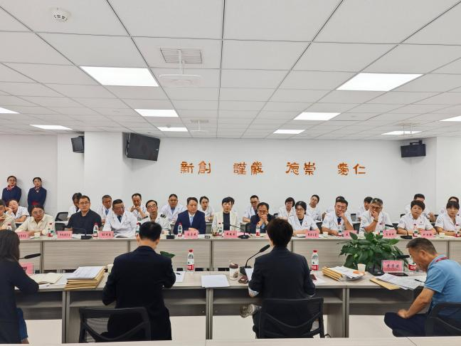 西安市第九医院心血管病院冯占斌院长详细汇报胸痛中心运行工作情况。核查专家组成员与基层网络医院的代表进行沟通与提问。