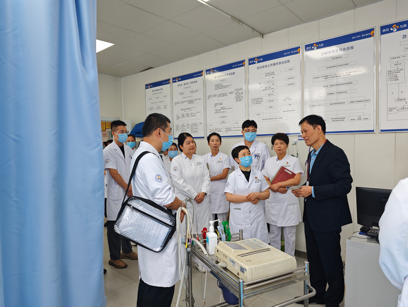 核查组长、西安交通大学第一附属医院任洁教授现场检查介入手术室、CCU病房等。