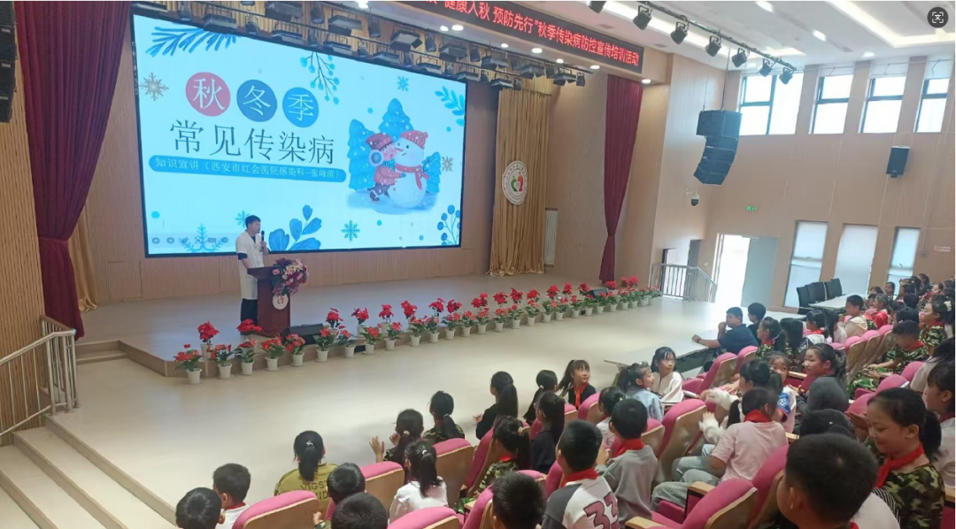值得注意的是,正值秋冬交替时节,儿童流行性感冒、手足口病等传染病进入高发期。为此,感染科医生张峰滨专程前往陕师大秦汉第四小学西校区,开展主题为“小学生秋冬季健康知识”的专题宣讲。他用生动形象的语言,向学生们讲解常见传染病的传播途径、预防措施及家庭护理要点,并重点示范“七步洗手法”,引导孩子们从小养成良好的卫生习惯。