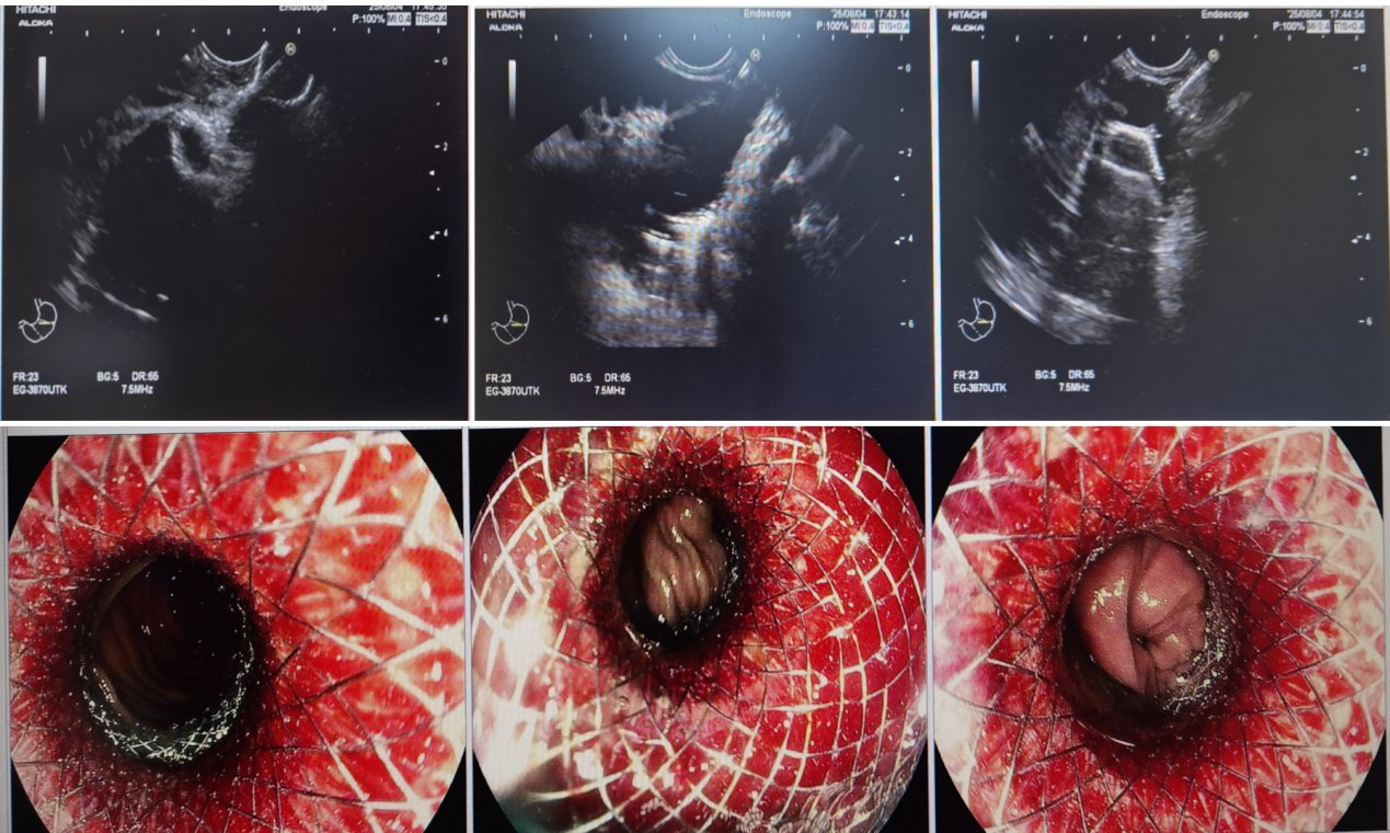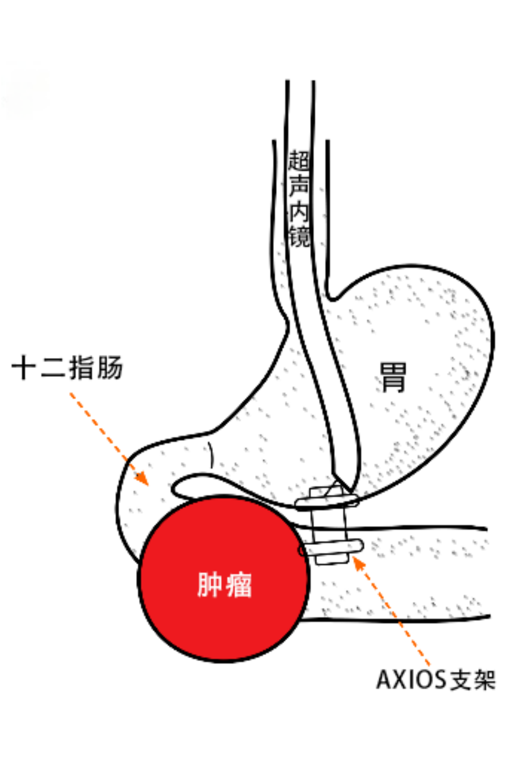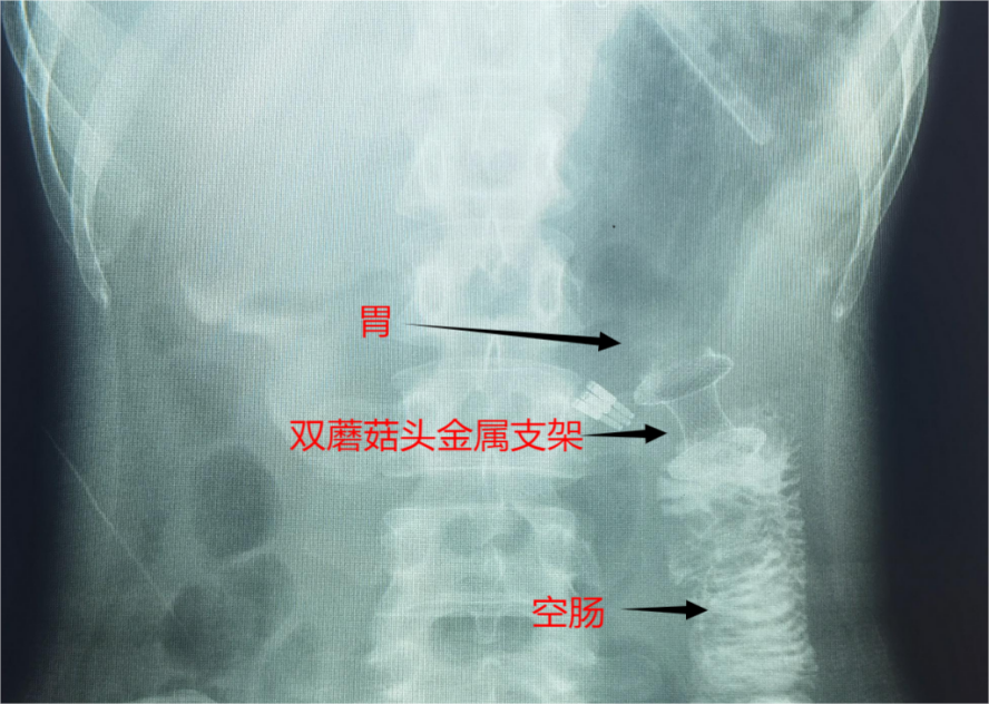 术中,医疗团队借助超声内镜实时定位,采用Hot-Axios一体式双蘑菇头金属支架系统,精准于胃壁与空肠之间搭建“人工桥梁”,使食物可绕过梗阻部位直接进入肠道。