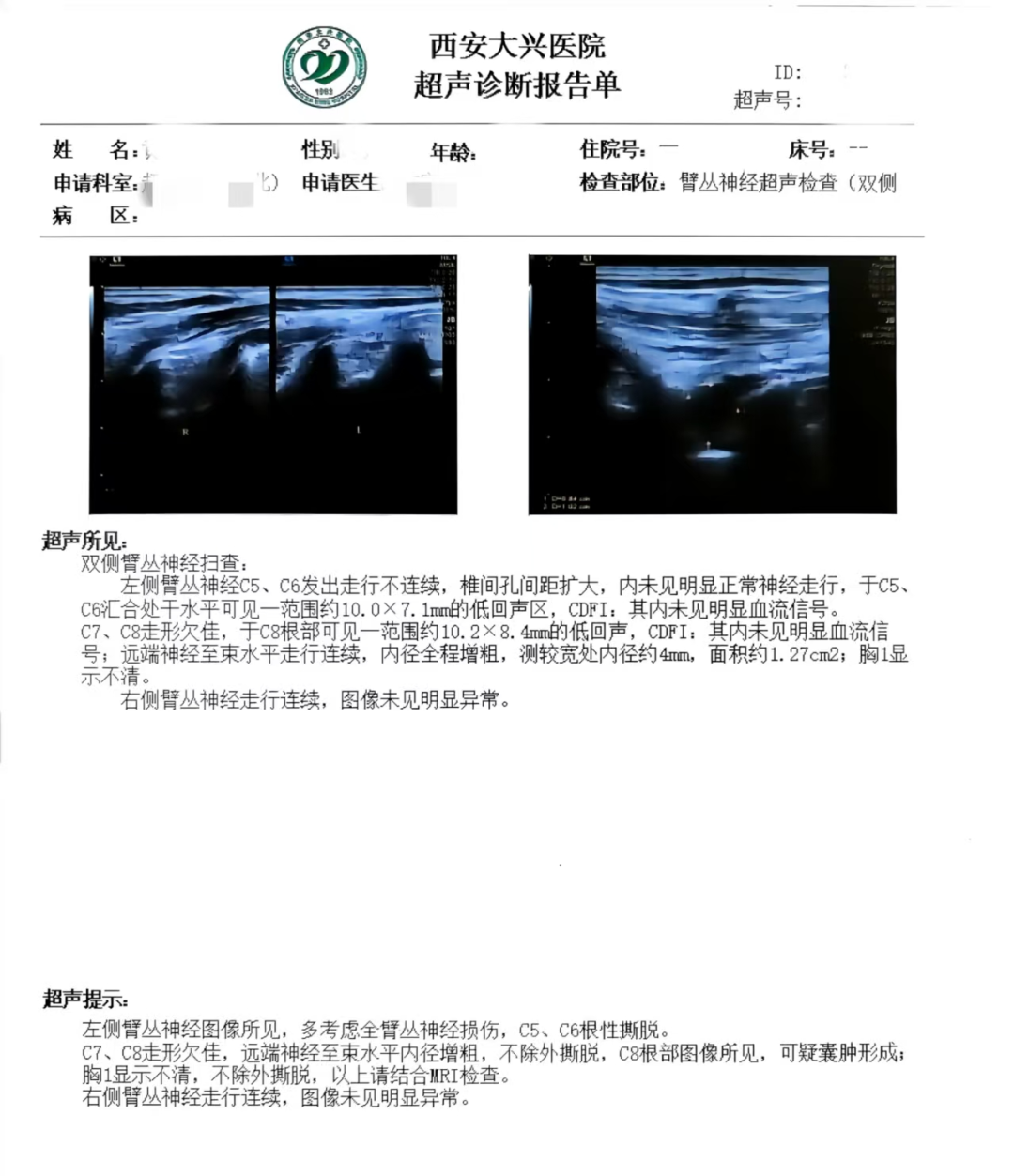 “两种检查结果能这么吻合,说明咱们的超声诊断既清晰又准确!” 王先生拿到报告时,悬着的心终于放了下来。而这份精准的诊断报告,也为后续的手术治疗打下了坚实基础。医院外科团队根据陈教授的超声诊断和磁共振结果,明确了手术重点:针对撕脱的颈 5-7 神经根,采用副神经、尺神经运动支等进行转位修复,同时处理可能存在的神经粘连。