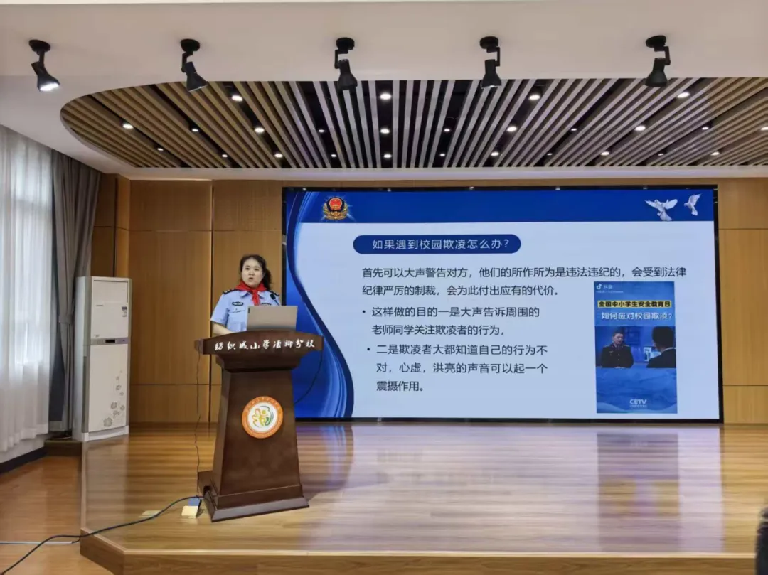聘任仪式后,冯丽铭与民警罗棡太分别为学生开展“防欺凌”和“反诈”主题安全教育讲座。冯丽铭结合真实案例,讲解校园欺凌的表现形式与应对方法,引导学生树立法治意识,不做欺凌者、受害者或冷漠的旁观者。罗棡太则通过趣味互动,揭露游戏交易、冒充老师、网络购物等常见骗局,强调“不轻信、不透露、不转账”的反诈原则,帮助学生提高防范能力。