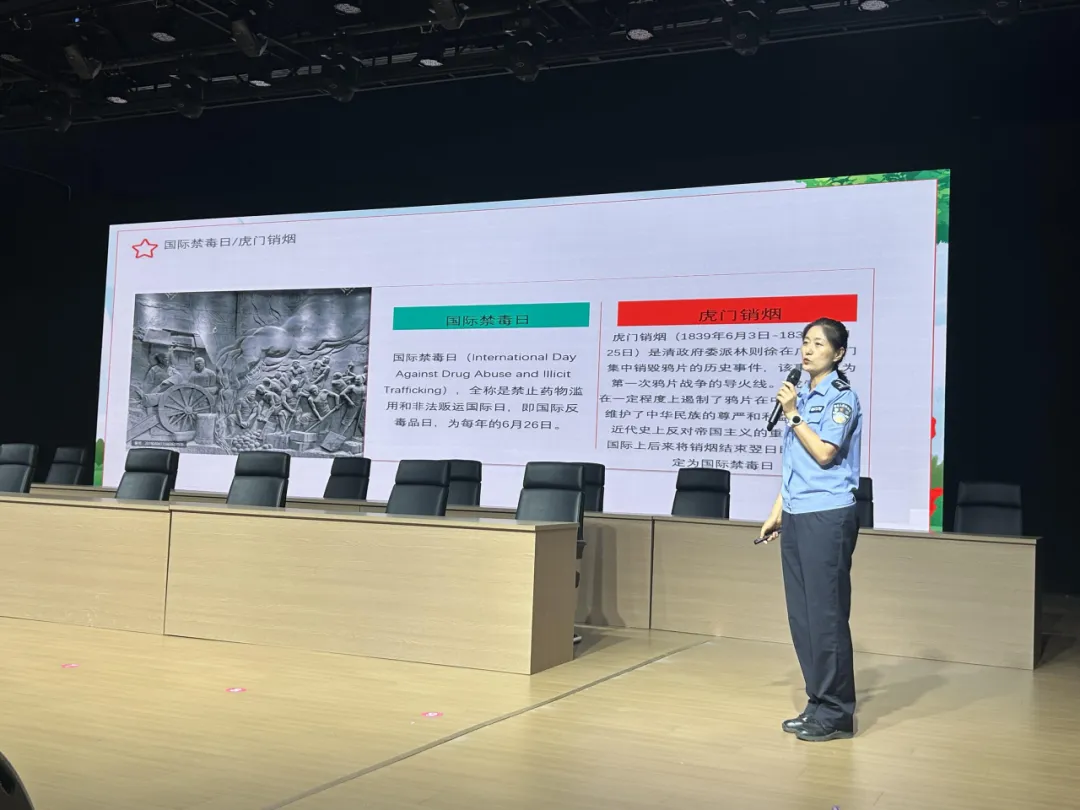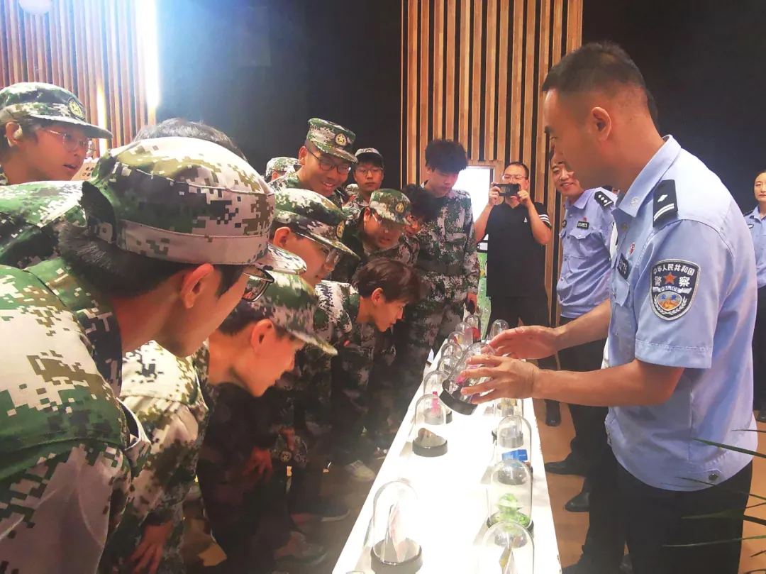 活动还设置实物展示与展板讲解环节,民警带领师生辨别毒品模型,结合真实案例再次强调防毒与反诈要点。整场活动内容实用、形式生动,师生积极参与,有效增强了安全防范和自我保护能力。
