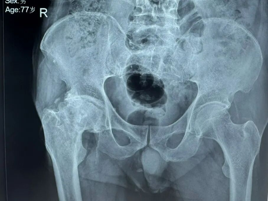 近日,陕西中医药大学附属医院骨伤医院骨病病区成功为一位78岁高龄、曾经历髋部手术的患者完成直接前方入路(DAA)微创全髋关节置换术。该患者王大爷三十年前因股骨颈骨折导致股骨头坏死,此次手术面临髋关节严重骨赘增生、患肢短缩及肌肉组织黏连等复杂情况,属于临床中较为棘手的高龄二次翻修病例。